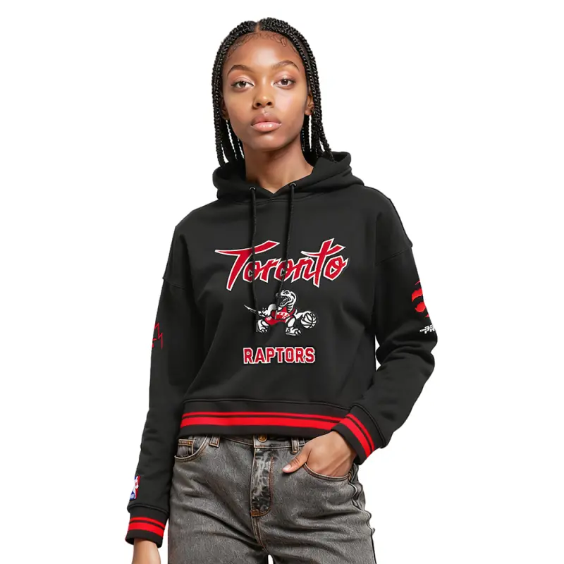 Home / Shop / SWEATSHIRTS / NBA TORONTO RAPTORS CITY EDITION 25-26 WOMEN’S RIB FLC CROPPED PO HOODIE (BLACK/RED/BLACK)